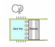 1. Si el aire encerrado en un cilindro y luego calentada, se observa que aumenta la presión dentro del cilindro. Se supone que una de las tapas del cilindro es un pistón y éste es apretado, habrá una expansión del gas y aumentar el volumen interior del cilindro hasta una posición final del émbolo.