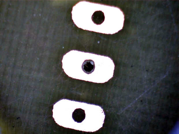 El tema de la perforación de PCB ha llegado muchas veces en el grupo de Yahoo Homebrew_PCBs. Entre los muchos pensamientos interesantes fue la descripción de Harvey White de la perforación de PCB que había construido usando una cámara de televisión y un taladro casero que perforado de los agujeros en la parte inferior de la PCB en lugar de la parte superior. También se ofrece un paso a paso motor por el eje de Z con una herramienta rotativa de alta velocidad como un eje.