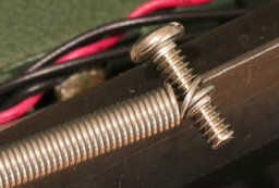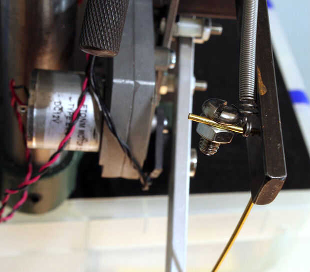 Deslice el otro extremo de la varilla de bronce por el agujero de la palanca del Motor y usar un 1/4-20 perno y tuerca para fijar el extremo de la varilla. Esto completa el acoplamiento, pero todavía debe ser ajustado.