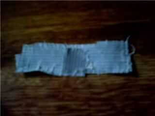 Rasgar un pedazo de cinta adhesiva para conductos de 1 y 1/2 pulgadas de largo y 1/4 ancho. Luego corte un pequeño trozo 1/4 por 1/4. Establecer el lado adhesivo del pedazo más y el pequeño pedazo del palillo en el centro.