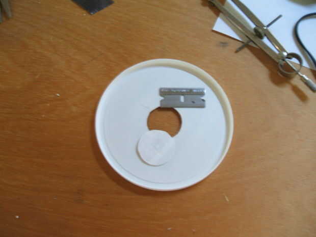 Retire la cinta que pones en la taza de Bamboleo a centrar y pegar la tapa en su borde, centrándola en la espiga. Esto actuará como un volante de inercia.