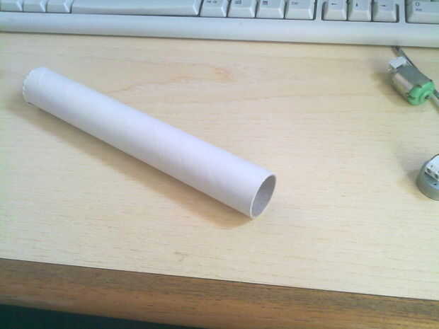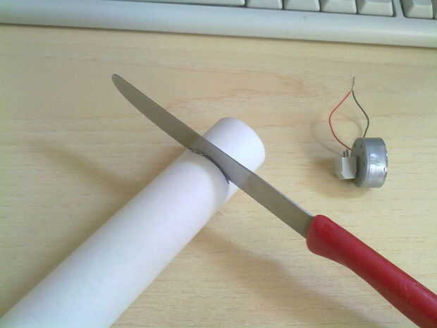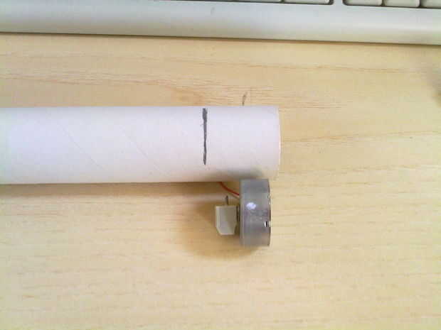 Ahora toma el tubo y solo cortar un trozo de ti (más 1-2cm más largo que el motor y su eje) ver el cuadro abajo. Y luego intentar llenar el motor dentro del tubo cortado. Si usted necesita más grueso utilizar alguna cinta negra como lo hice.