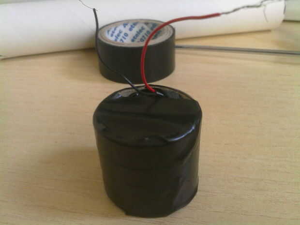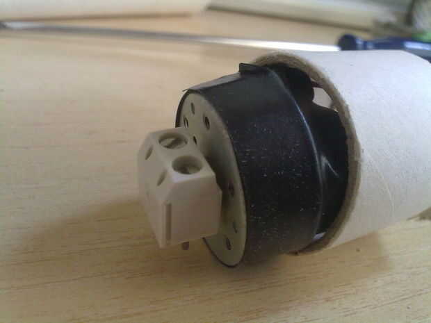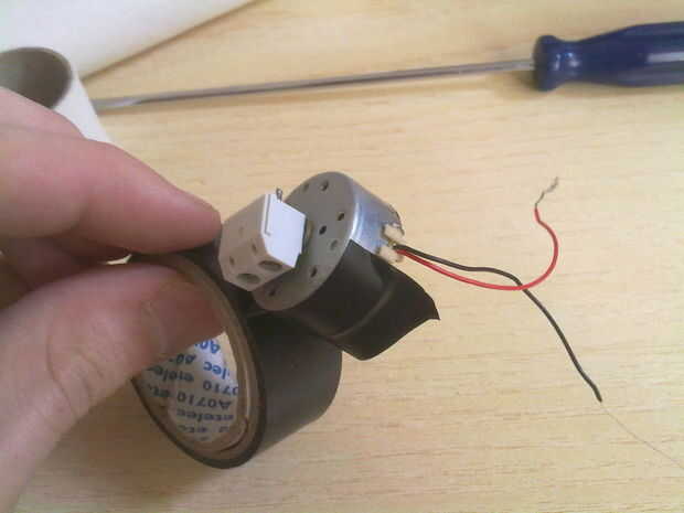 Llenar el tubo con el motor y cerrar los dos extremos con la cinta. Y ya está. Recuerde que debe mantener los dos cables del tubo porque te necesita para que el motor funcione :)