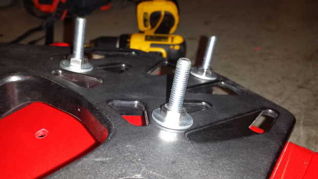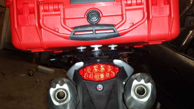 VI casos de caribú y pensé en vez de comprar una caja superior de 350$ para mi moto, fui a bandh.com y agarró un caso de hprc por 80 dólares. Luego fui a ace hardware y pasó cerca de 15 dólares en tornillos y arandelas.