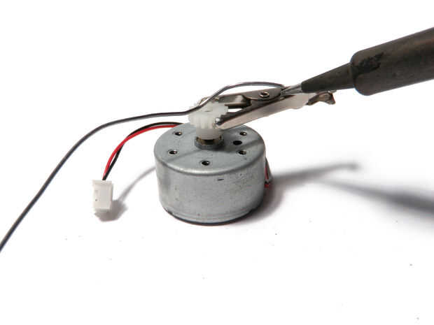 Encontrar un motor con un engranaje de nylon plástico. Abrazadera pinza cocodrilo en este arte. Por último, soldar entre sí las mitades de la pinza de cocodrilo. Esto tanto funden la pinza en el engranaje y las dos mitades para evitar que se abra otra vez el fusible.