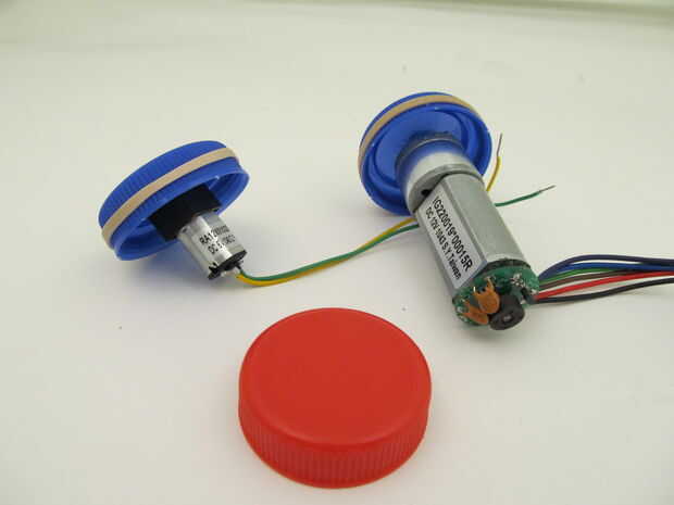 Si has podido conseguir sus manos en algunos motores de caja de cambios, hay una muy simple rueda poco puede hacer que se conecta a. He utilizado tapones de la marca de leche mi compañero de cuarto y comprar, pero puede hacerlo con cualquier tipo de tapa, siempre y cuando sea más grande que el diámetro de la rueda! Para los motores elegí tapas de botella de refresco habría funcionado muy bien (y yo puedo realmente preferido para el más rápido motor de Digilent retrasar un poco), pero también podría hacerlo con tapas tan grandes como tapas de Pringles.