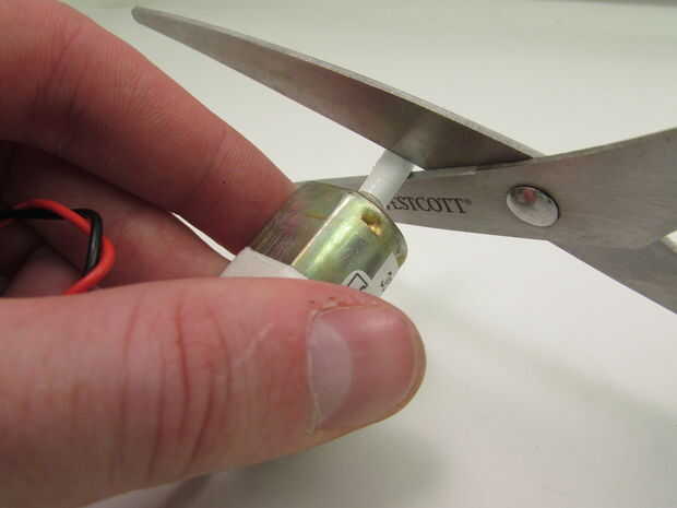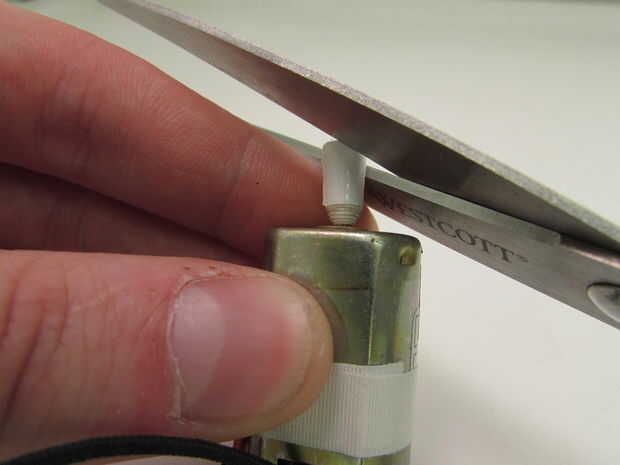 Una vez que el eje es, si usted aprieta, podrá sentir donde los extremos del eje y el conducto de cinta se cuelga solo apagado. Tome unas tijeras y cortar esto. Luego use sus tijeras para aproximadamente biselar los bordes de las esquinas del corte apagado. El resultado final debe estar un poco redondeadas.
