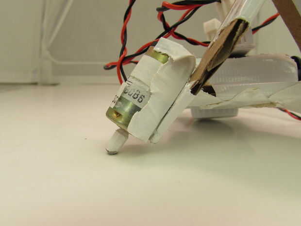 Mayoría de las ruedas tiene que ser más grande en diámetro que el motor sí mismo, por lo que la rueda puede rodar sin arrastrar el motor, pero no esta. Eso es porque para utilizarlo, tienes que montar el motor en un ángulo, por lo que la rueda golpea el suelo pero no el motor. Para probar esta rueda, he creado un simple chasis de bastidor que hizo el truco. Te voy a mostrar cómo hacer uno más tarde en otro Instructable para chasis robot barato.
