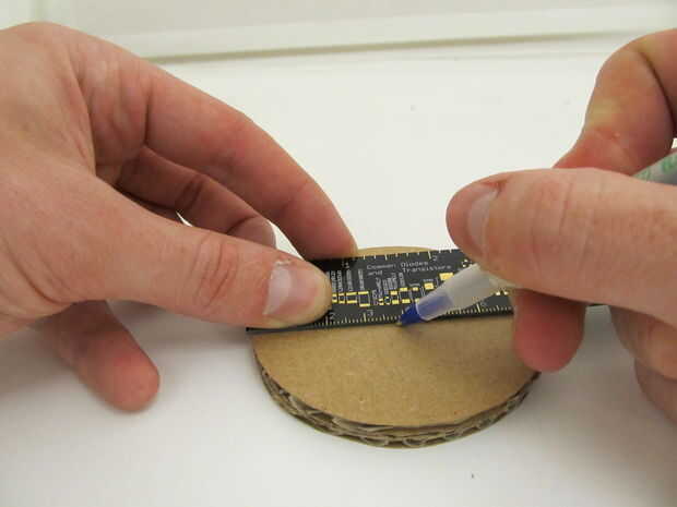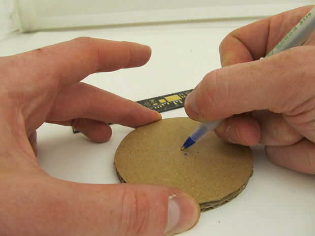 Porque no utilizo un compás para hacer mi rueda, necesitaba encontrar el centro de mí mismo. Hay algunas maneras muy bien para encontrar los centros de los círculos, pero sinceramente algunos adivinar (ayudado con una regla) le hará bien.