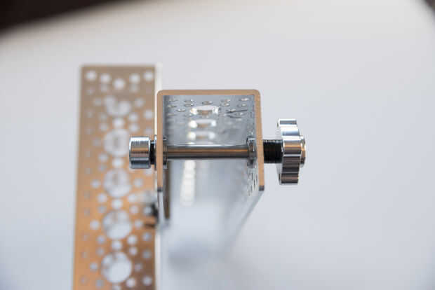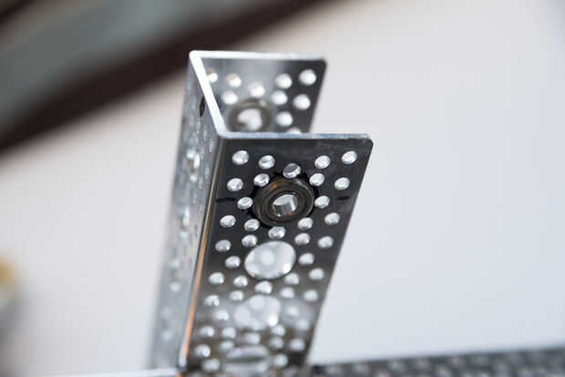 1) poner un (. 250" ID x. 500" OD) brida cojinete de bolas en los agujeros más grandes en la parte superior de la canal de aluminio de 9".
