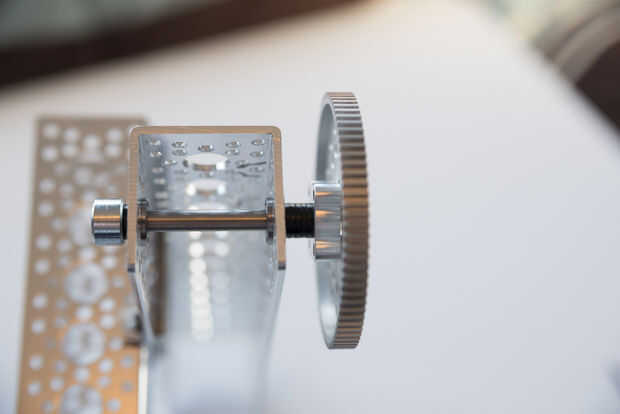 Paso 2: Insertar rodamientos, separadores, D-eje y el engranaje grande