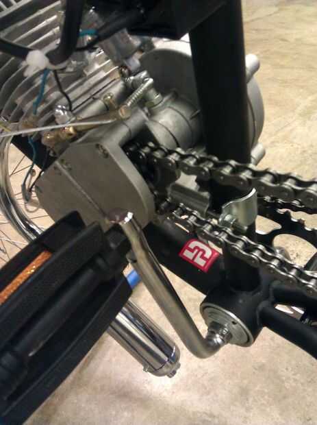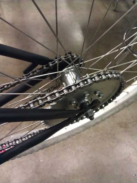 Nota al margen; la mayoría de los tensores de cadena que se proporcionan con los kits no es muy buena. Hay un alto riesgo del tensor de conseguir aspirado en la rueda y provocar un accidente. Puede escapar sin correr uno, (lo hice), pero otros han visto un alto grado de éxito enlatado una rueda de skate board y haciendo un montaje personalizado.