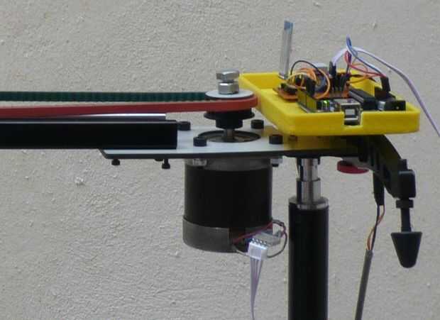 También es posible utilizar una manija para accionar manualmente el regulador. Este mango puede fijarse a la cabeza del perno encima de la polea del motor paso a paso.