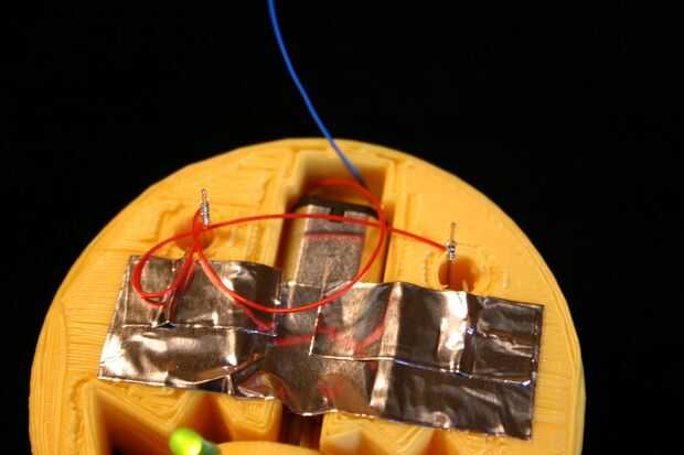 Este anillo iluminado para Halloween utiliza una batería 2032 y un LED blanco. Una calabaza real fue analizada, entonces la boca, ojos y ranura de la batería fueron insertados usando Tinkercad.com.Paso 1:Impresión utilizando una impresora 3D (o un se