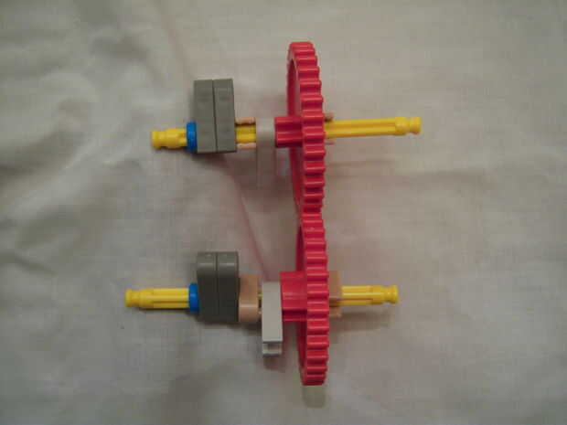 Este es un diseño de pistola goma simple y eficaz a diferencia de otras que he visto.La diferencia es que es accionado por el motor de k'nex lo que permite a múltiples bandas para dispararse simultáneamente, en lugar de hacer uno a la vez :)--No olvi