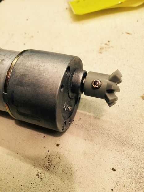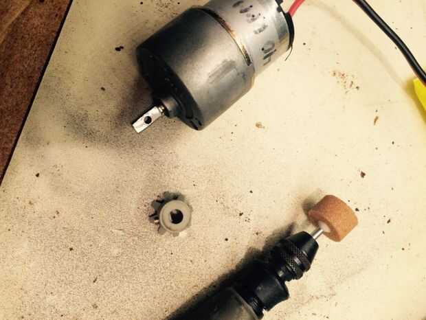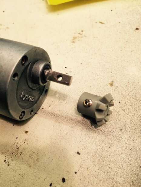 Modificar el eje había conectado al motor a una fuente de energía y lo convirtió. Luego utilizar una Dremel con un esmeril y quitado suficiente material para reducir el tamaño del eje del diámetro adecuado.