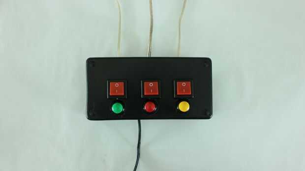 La última parte que debe construirse es el panel de control. Para hacer esto, coloque todos los interruptores en el frente de una carcasa de plástico. Luego corte las ranuras en los lados de los cables de alimentación y cables.