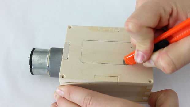 Ahora usted necesita cortar un agujero en la cubierta del cabrestante para la cuerda. Porque yo estaba usando madera baja, sólo corté un agujero rectangular con un cuchillo.