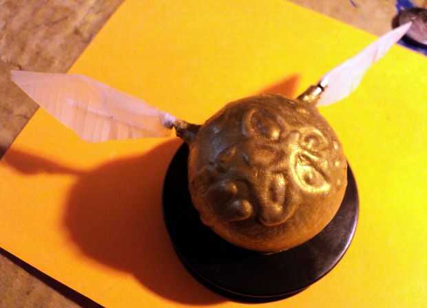 Utilice una pintura de tela gelificada para hacer sus diseños dimensionales 3 en la bola. La botella tiene un applicatior de aguja así que todo lo que hacen es pintar en su diseño y deje secar. Personalizar la snitch dorada a su gusto. Vaya equipo Adafruit.