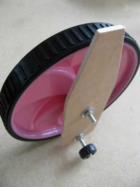 Mutt 2: Foto 7 es el estado actual de mi construcción de Mutt 2. La rueda es una rueda de ejercicio rosa horrible y los estabilizadores son madera contrachapada con pernos para los ejes. Mi siguiente tarea es montar el motor, luego la batería y receptor de radio. Será cuesta abajo en ese momento.