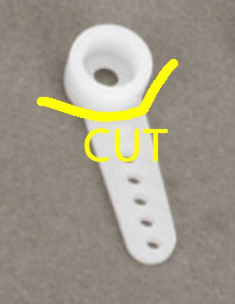 - Cortar la parte superior del cuello (ver foto). Tienes hasta el diámetro de la sección será del mismo diámetro como el brazo del Servo Así que no habrá ningún paso entre los dos.
