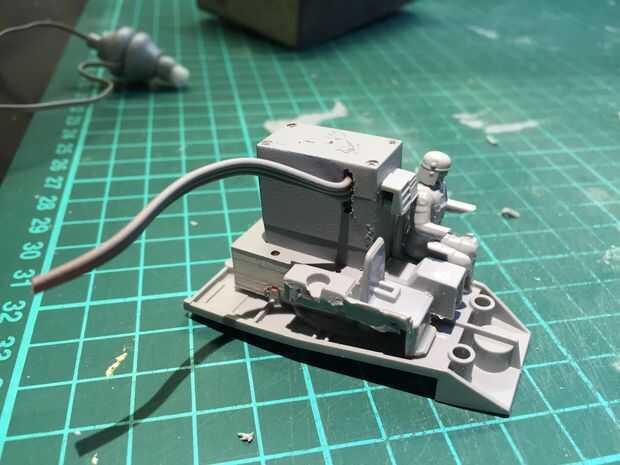 Ahora tenemos que modificar la cabeza para sostener el micro servo y hacerla ajuste al servo brazo que forma el cuello abajo. Esta articulación no requiere cola. 2 led2 ha añadido y sólo uno de los "ojos" abiertos como se puede ver en fotos y video.