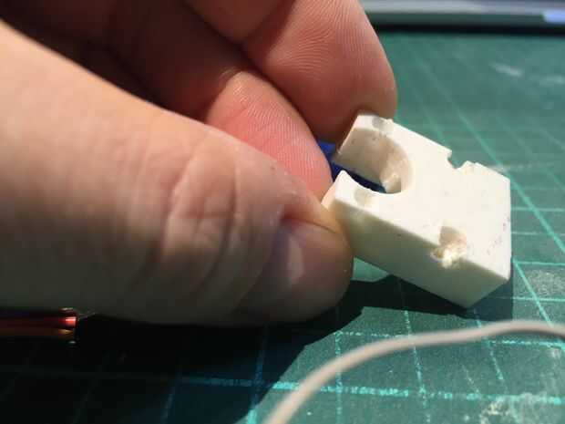 Ahora puede probar a instalar el servo, para ver si todo se ajuste bien. También intentar unir el cuello y ver si todo está bien.