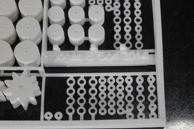 Aquí hay algunas fotos por lo que puede medir la magnitud y precisión que se puede imprimir con una impresora de SLS (no que tenemos uno!) hemos utilizado una compañía en Inglaterra llamado Reino Unido de impresión 3d y llegaron a un costo razonable de £78. Ahora comparar que a 3er partido y no una mala cuesta en cada pieza y viendo que puede imprimir 500 segmentos de pista en esta impresión (que es suficiente para 10 tanques). Tan £7,80 para un conjunto de pistas es muy bueno.