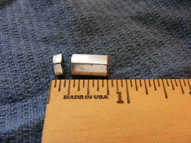 2. Sierra la tuerca de acoplamiento en 2 trozos, uno más corto de 1/8 pulgadas de largo (esto será su contratuerca). Presentar los extremos lisa y plana con una lima de metal.