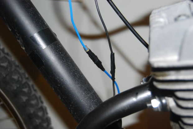 Tome el cable rojo de la válvula reguladora y atacarla el marco, tome el cable negro y conecte con el cable blanco que viene del motor. Al pulsar el interruptor de matar usted aguantar así que dará vuelta de parada no sólo.