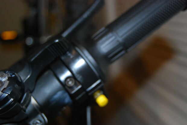 Tome la empuñadura existente fuera de la bicicleta y deslice el acelerador en el lado derecho de la moto. Utilice una llave allen para apretar. Tome el cable de la válvula reguladora y deslice en el carburador cuando usted tira de la válvula reguladora debe sentir cierta resistencia cuando se gire.