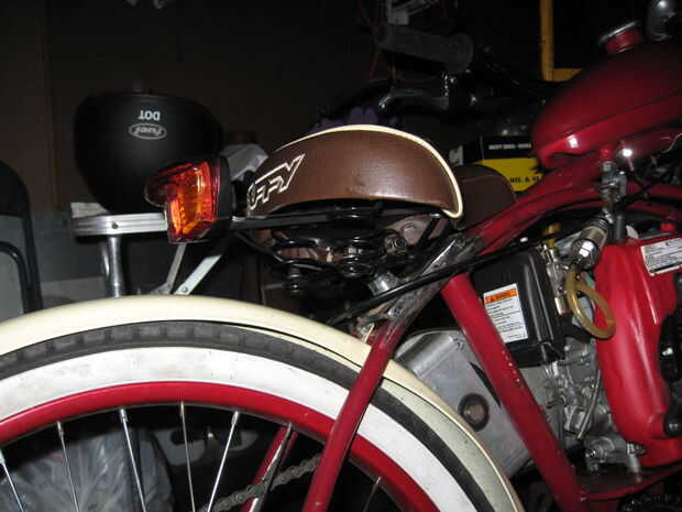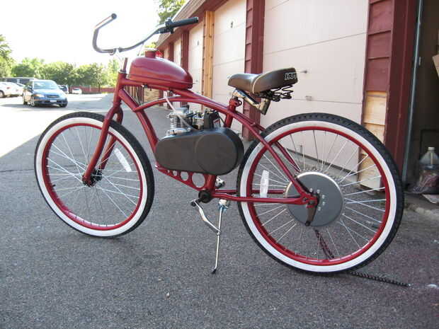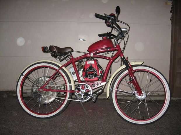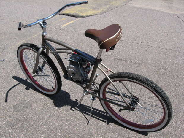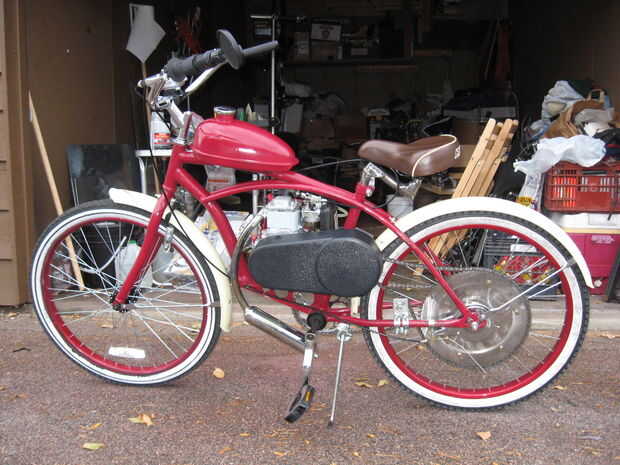 Exprimir un GXH50 Honda en una Huffy 24" muchacho 's bicicleta del crucero de Cranbrook.