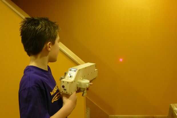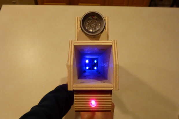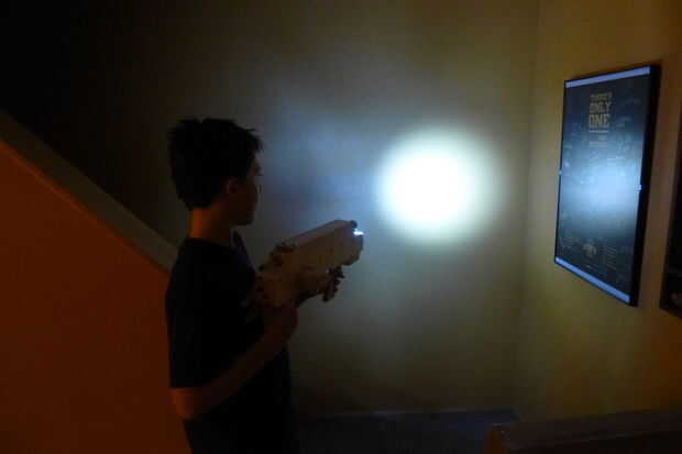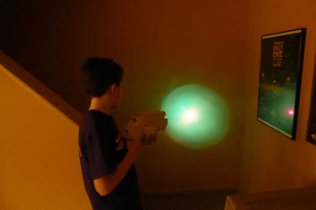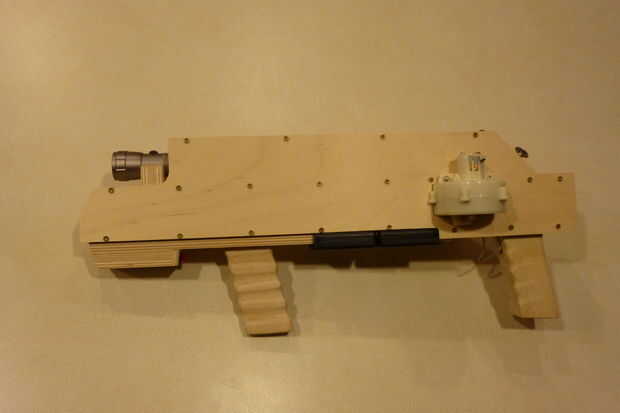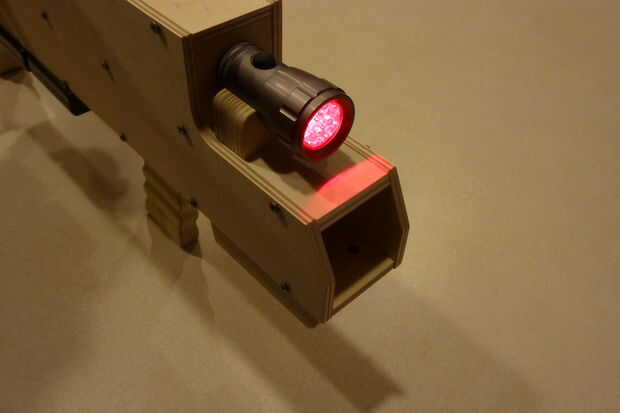 La pistola es accionada por dos paquetes de 4 pilas «AA» para que pueda utilizar las baterías recargables y mantenerse verde. Un paquete ejecuta los motores que disparar pelotas de ping pong. El paquete de otros poderes la cabeza de la linterna en la parte superior delantera de la pistola, los LEDs de UV que cargar el resplandor en las pelotas de oscuro ping pong y el láser en la parte inferior de la pistola.