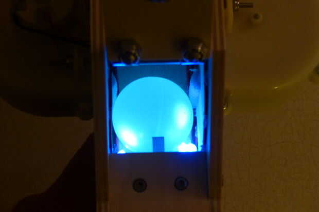 Luces LED de UV están montadas dentro de la pistola de pelotas de resplandor en la oscuridad ping pong para salidas de disparar la gran noche de tiempo de carga. Los LEDs UV también agregan un resplandor fresco al cañón de la pistola también.