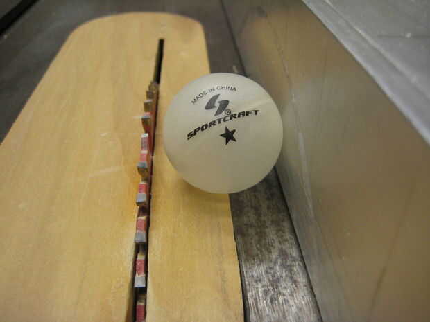 Una otra cosa que le ayudará a todas las piezas van de la mano es mejor para cortar las piezas superior e inferior del cañón y Sierra de la parte superior de la reserva de bola de ping pong para el mismo grosor en una mesa con una valla.