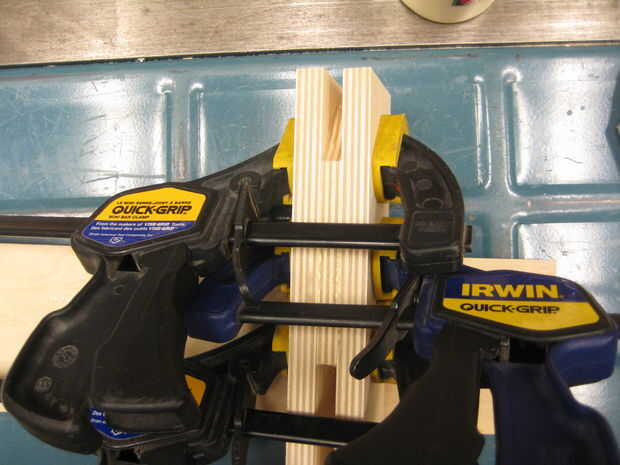 Trate de cortar molestia lado piezas de la pistola al mismo tiempo. Puede sujetar con cinta de doble cara o dejar unas fichas en las piezas de madera pegadas que se pueden cortar más tarde.