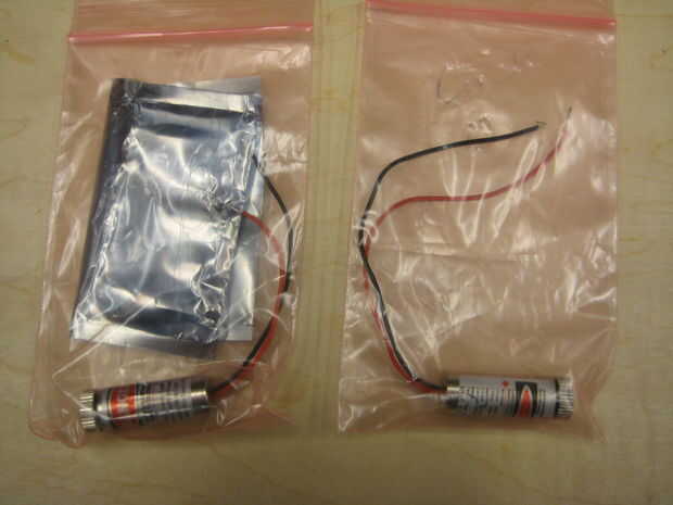 El láser que he utilizado fue un laser de 3,2 voltios, pero parece funcionar bien con 3 voltios de la batería.