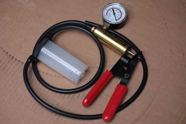 La herramienta principal que desea invertir en es un sangrado de frenos herramienta vacío. Esta herramienta hace el trabajo rápido, limpio y fácil. Junto con esto necesita una llave de caja que coincida con el tamaño del pezón sangrante en su motocicleta. Para mi esto era 10mm para los frenos y 8mm para el embrague. Por supuesto se necesita el líquido de frenos apropiado junto con un contenedor para sostener el líquido viejo. Finalmente algunos trapos y toallas de papel son útiles para recoger cualquier goteo o regates.