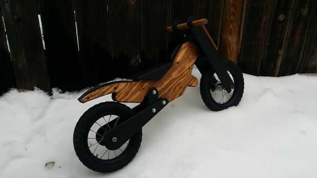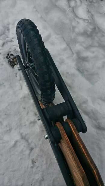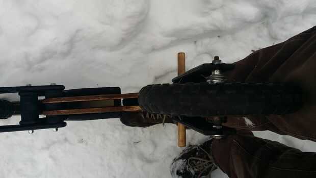 necesarios: dos 20" ruedas (se pueden ajustar a los planes para otras ruedas de tamaño); madera: claro ceniza de grano recto o hickory es preferido pero se ha utilizado el abeto de Douglas; pegamento blanco; bisagra resistente; pernos; tornillos; cue