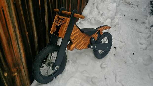 necesarios: dos 20" ruedas (se pueden ajustar a los planes para otras ruedas de tamaño); madera: claro ceniza de grano recto o hickory es preferido pero se ha utilizado el abeto de Douglas; pegamento blanco; bisagra resistente; pernos; tornillos; cue