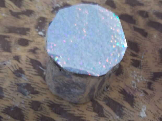 Corte un pedazo de plástico de la tarjeta alrededor de una botella según el tamaño luego péguelo. De manera similar, cortar una pieza redonda. Utilizar algún tipo brillante de papel de embalaje para cubrirlos.