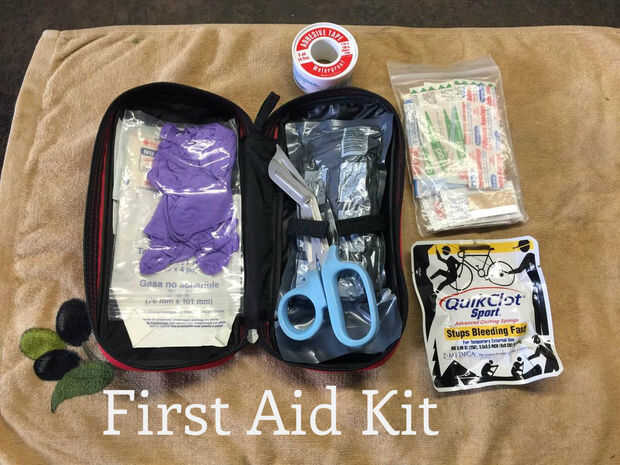 - Botiquín de primeros auxilios- tomar un curso de CPR en su local de la Cruz Roja y primeros auxilios