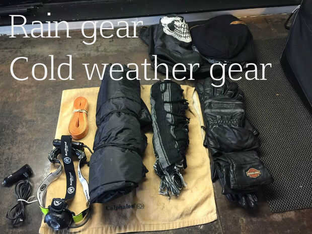 - Paquete lluvia de engranajes en la parte superior de la bolsa de sillín adecuado por lo que si el clima se vuelve húmedo y hay que detenerse en una carretera muy transitada no debe ir en el lado de tráfico para recuperar su equipo. Lo mismo va para las herramientas.
