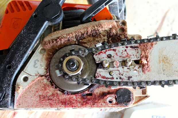 Aunque no conseguí mucha salpicadura de aceite en la cartulina siguió adelante y dio la sierra una prueba cortando hacia abajo un montón de pequeños árboles y ramas. Mantenía en este por lo menos una media hora sin ningún problema aparente.
