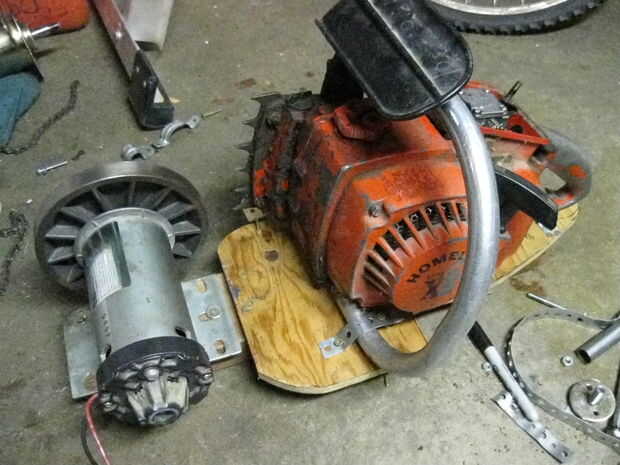l forrado cosas para arriba para un mejor ajuste, soportes, manijas, y luces todo será diferentes con distintos modelos de motosierras y esas cosas. Aquí se necesita un poco de creatividad. Usé las correas del metal de la plomería, tornillos, madera de desecho y algunas probabilidades y termina aquí.