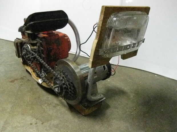 Además, yo usaría una polea y la correa la próxima vez en lugar de la cadena de la bicicleta; es tan difícil conseguirlo alineados y le gusta pop off y rodillo a través de la yarda.