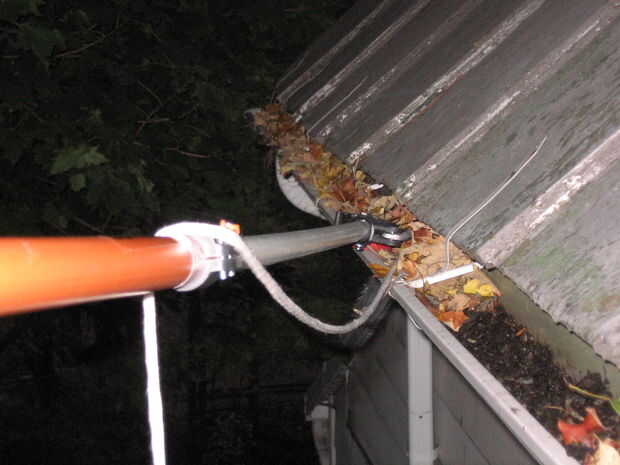 Secure el rastrillo de canal para el poste del poste de la sierra usando las tuercas de mariposa. Vayan y rastrillo. El único problema que encontré fue que me olvidé de los soportes de canal pequeño que se encuentran en el canal de cada 18 pulgadas. En lugar de tirar las hojas nuevamente a mí, me tuvieron que tirar al apoyo más cercano y utiliza un movimiento de contorsión para tirón fuera de la cuneta. Ahora tengo que usar un rastrillo regular para limpiar el suelo, pero estas son hojas que de lo contrario habrían compostado en mi canal y les estorbó. Así que decido ver el rastrillo del canal como un éxito.