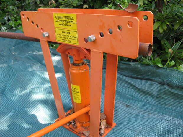 Un doblador de la pipa de 12 ton prensa hidráulica fácilmente dobla la tubería de pared delgada.  Tal vez demasiado fácilmente.