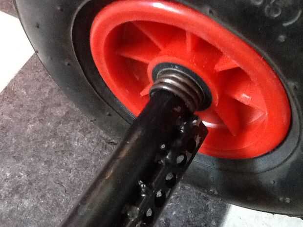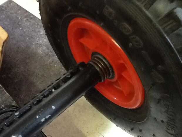 - x 4 grandes ruedas con bujes . Como veis que he usado ruedas muy amplias para el uso en la playa, diseñado para su uso en una carretilla. sin embargo estos no son los mejores, porque tienen los rodamientos de rodillos en lugar de rodamientos pero en barato y lo he planeado reemplazar los cojinetes.