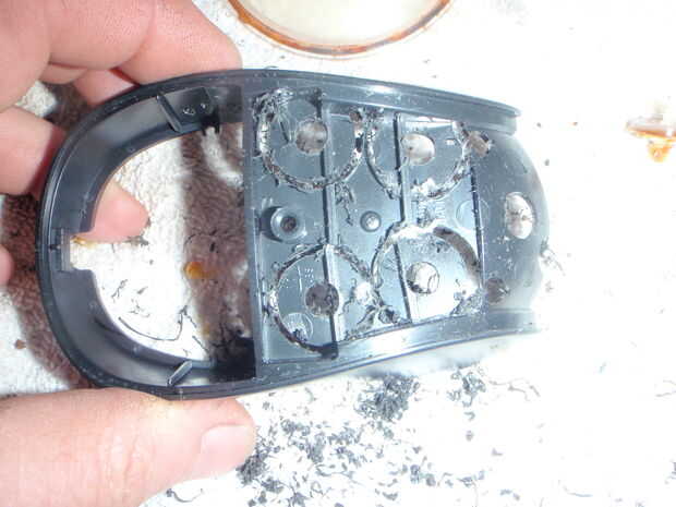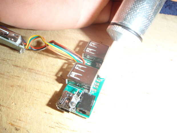 Mi plan era también quitar la toma mini usb que es la entrada pero me pareció demasiado pequeño para la soldadura conduce a. Al final tuve que también Quite la rodillera a través del centro ya sólo podía no encajo todo.